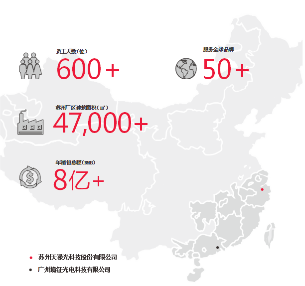 蘇州天祿光科技股份有限公司成立于2010年11月,主要從事生產(chǎn)、 銷(xiāo)售、研發(fā)光電導(dǎo)光板及相關(guān)零組件,2021年主營(yíng)業(yè)務(wù)收入超8億元。2013年我司在相城區(qū)黃埭鎮(zhèn)委、鎮(zhèn)政府,相城區(qū)委、 區(qū)政府的大力優(yōu)惠的招商引資政策上購(gòu)置了45畝工業(yè)用地。并建成工業(yè)用房47000平方米,現(xiàn)已正式投入使用。